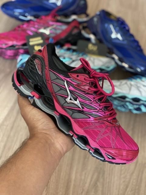 O MIZUNO WAVE PROPHECY 7 é um tênis de corrida chegou com design moderno e marcante, de encher os olhos dos apaixonados por tênis além de contar com as tecnologias U4ic X, com textura mais macia e de alta absorção de impactos, e a Placa Infinity Wave, que estende-se do calcanhar até o meio do pé com cavidades que absorvem o máximo de impacto. Seu aliado perfeito para corridas de alta duração, sendo um tênis que serve para todos os esportes